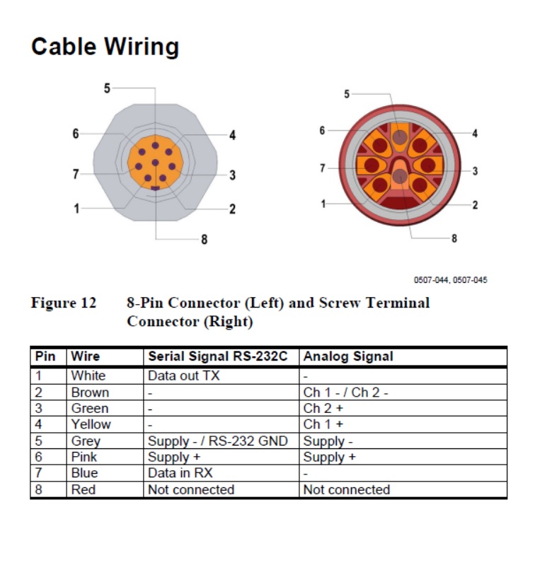 MMT310 系列具有兩路模擬輸出和一路R S-232 串行輸出。信號輸出線和電源線都包含在一根電纜中。