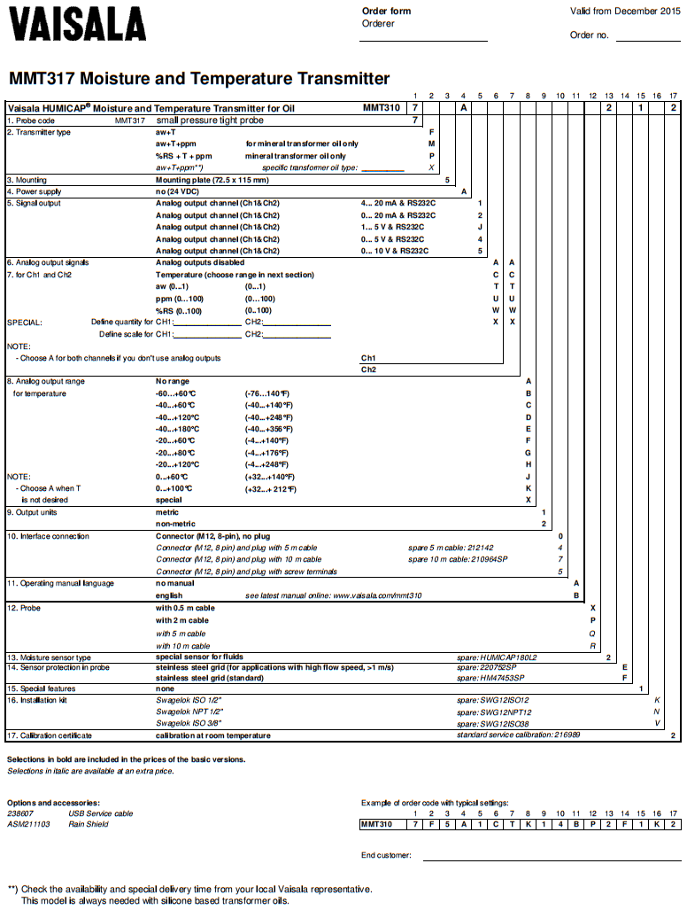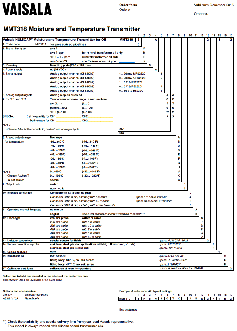 PPM是變壓器應用中的傳統計量單位,表明平均油中水分質量濃度。礦物變壓器油的ppm計算輸出是MMT310系列的可選項。滿足不同的應用和使用環境M M T 310系列可以用在潤滑系統,液壓系統和變壓器系統中,用于在線水分監測并具有控制器功能(僅在必要時控制油水分離器和濾油機的啟動)。